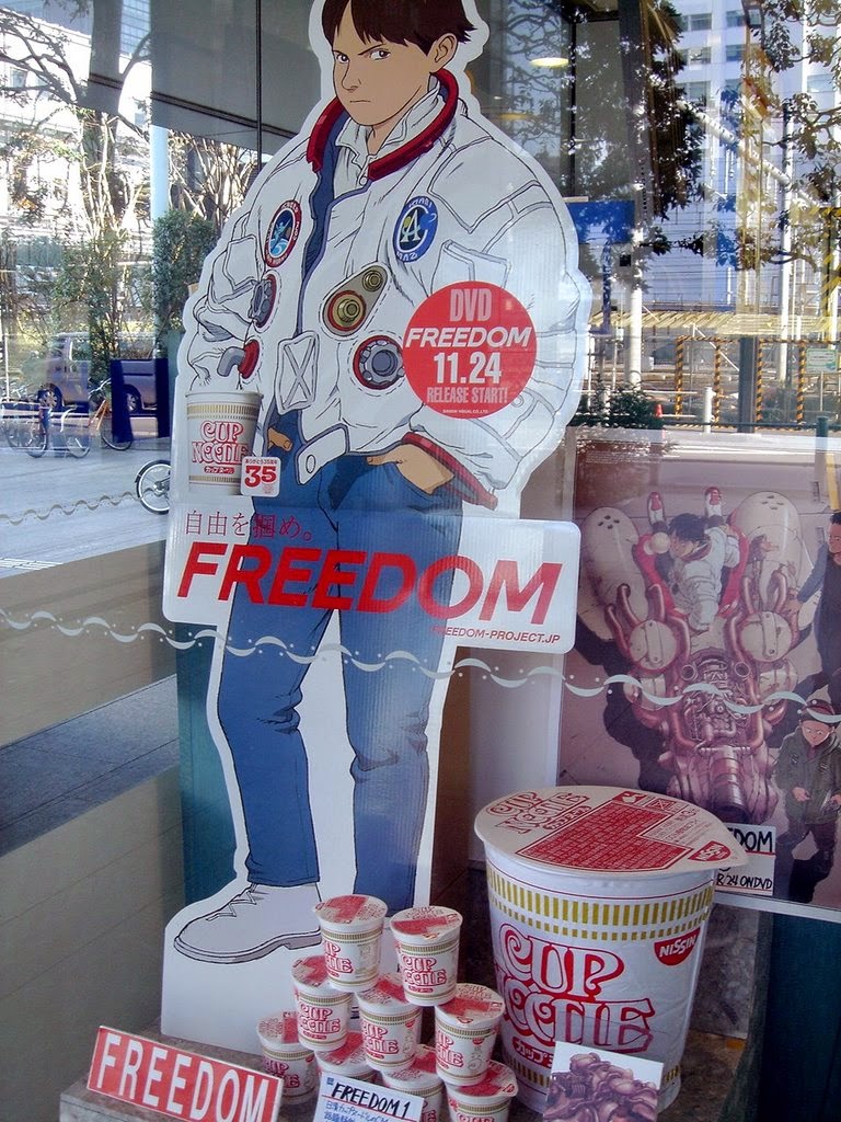 Freedom Project คือการตีโจทย์ของ NISSIN ว่าลูกค้าที่เค้าต้องการคือกลุ่มเด็กวัยรุ่นผู้ชาย ซึ่งประเทศญี่ปุ่นเป็นประเทศที่บ้าอนิเมะอยู่แล้ว ดังนั้นการจะเข้าถึงลูกค้ากลุ่มนี้ให้ได้อย่างกลมกลืนที่สุดคือการสร้างอนิเมะเรื่องใหม่ขึ้นมาเลย โดยเลือกใช้อาจารย์ Katsuhiro Otomo ที่มีงานสร้างชื่อระดับขึ้นหิ้งอย่าง AKIRA มาเป็นคนออกแบบตัวละครให้ และสร้าง OVA ขนาดยาว 7 ตอน เพื่อออกฉายทางเว็บไซต์เป็นหลัก