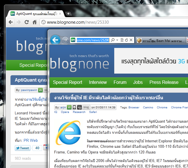จากข่าว งานวิจัยชี้ผู้ใช้ IE มีระดับไอคิวน้อยกว่าผู้ใช้เบราเซอร์อื่น ถ้าฝรั่งเจ้าของงานวิจัยมันอ่านภาษาไทยออก มันคงบอกว่า