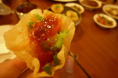 รสชาติก็อร่อยดี เหมือนกระทงทองบ้านเรา ซึ่งจะมีน้ำจิ้มมาให้ด้วย