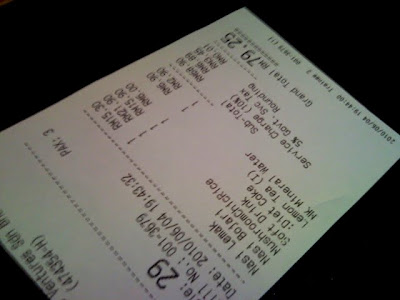 ปิดท้ายด้วยใบเสร็จราคาค่าเสียหาย อาหาร 3 อย่าง น้ำ 3 แก้ว (โค้ก ชามะนาว น้ำแร่)