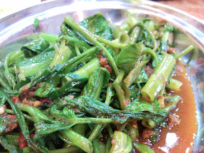 ผัดผักบุ้งมาเลย์นี่มันจะใส่กะปิครับ เป็นกะปิมาเลย์ด้วยไม่ใช่กะปิไทย มันก็จะอารมณ์กลิ่นปลาแห้งประมาณนี้แหละ